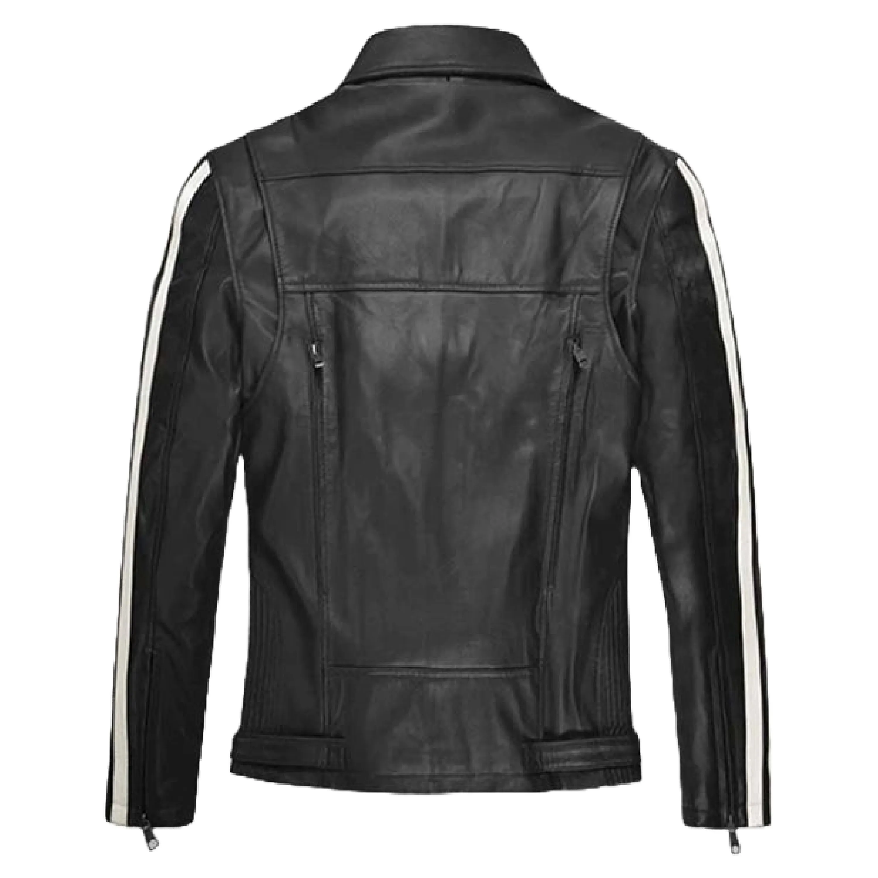 The Monarch Stripe Leather Jacket is a stylish blend of classic and contemporary design, made from premium real leather and equipped with multiple pockets for practicality.