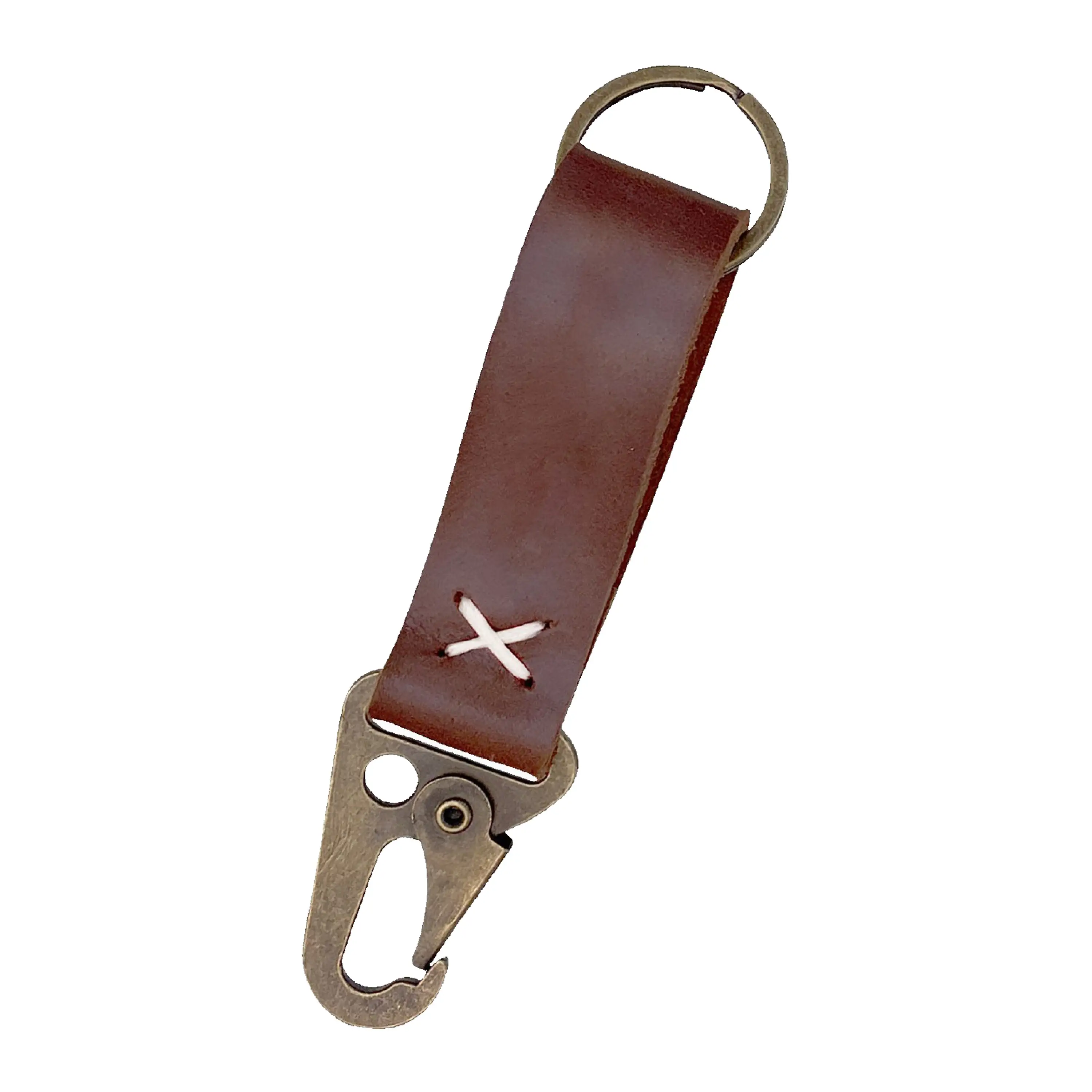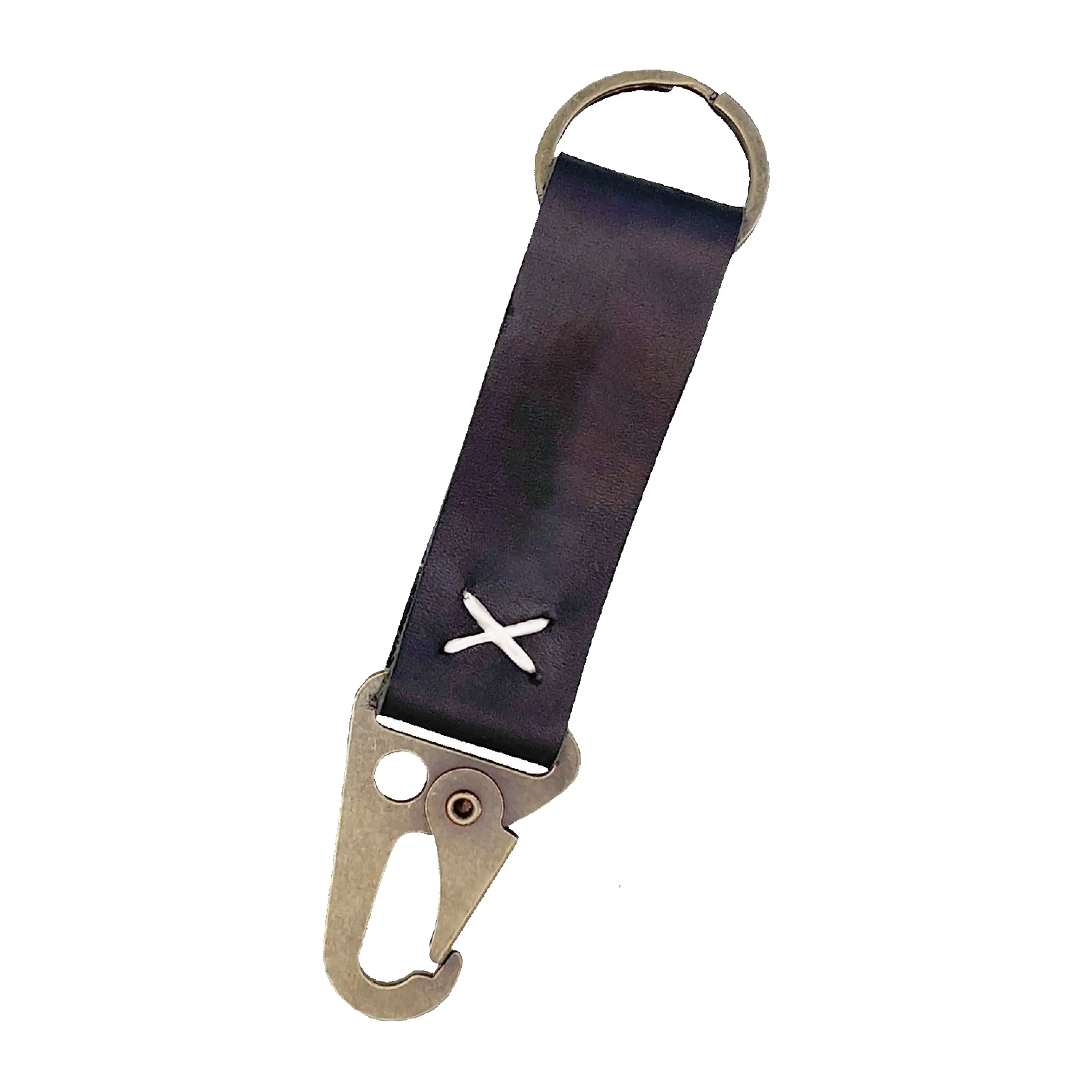- High-quality genuine leather center with split ring and durable carabiner clip.