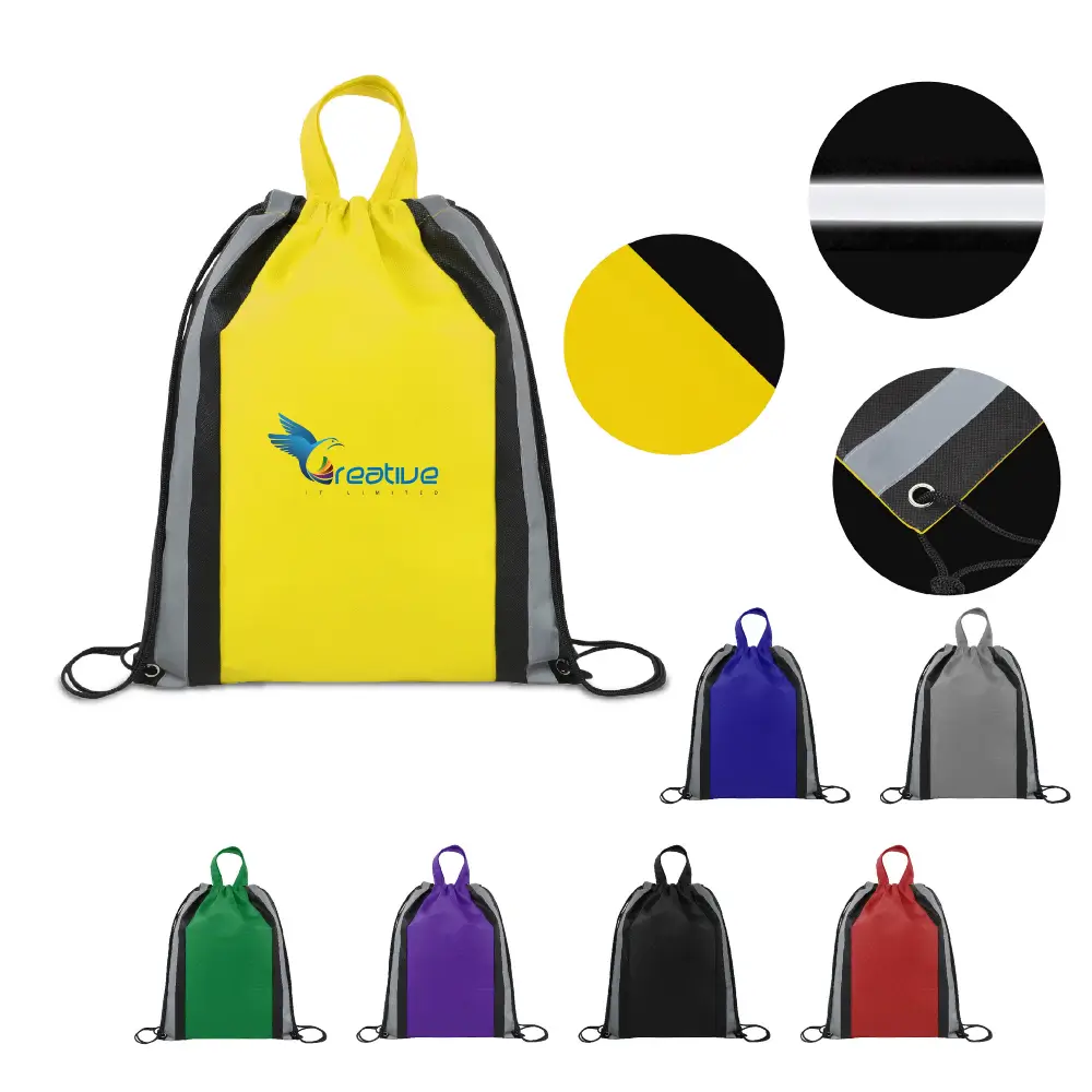Stay visible with this personalized drawstring bag featuring reflective strips for added safety. Lightweight and eco-friendly, it's ideal for outdoor activities and promotions.