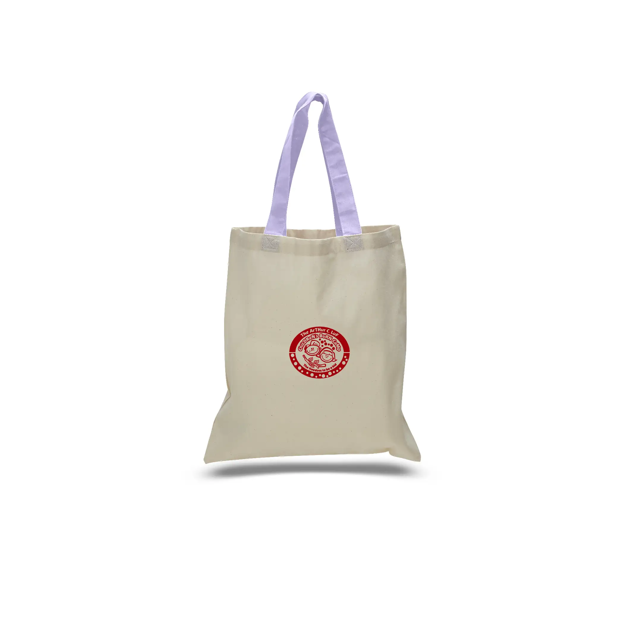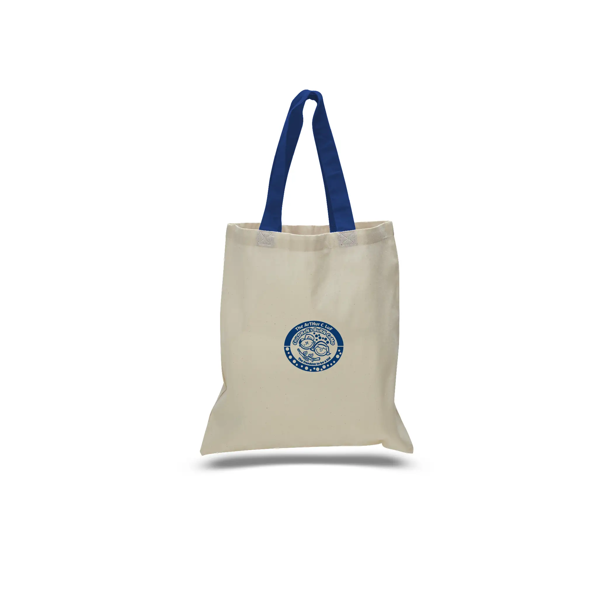 A promotional cotton reusable tote bag designed for events, shopping, and branding. Made of durable cotton canvas with colored handles for a stylish and eco-friendly touch.